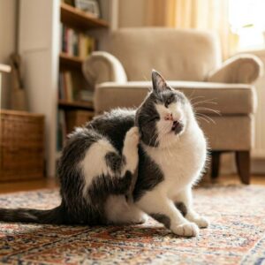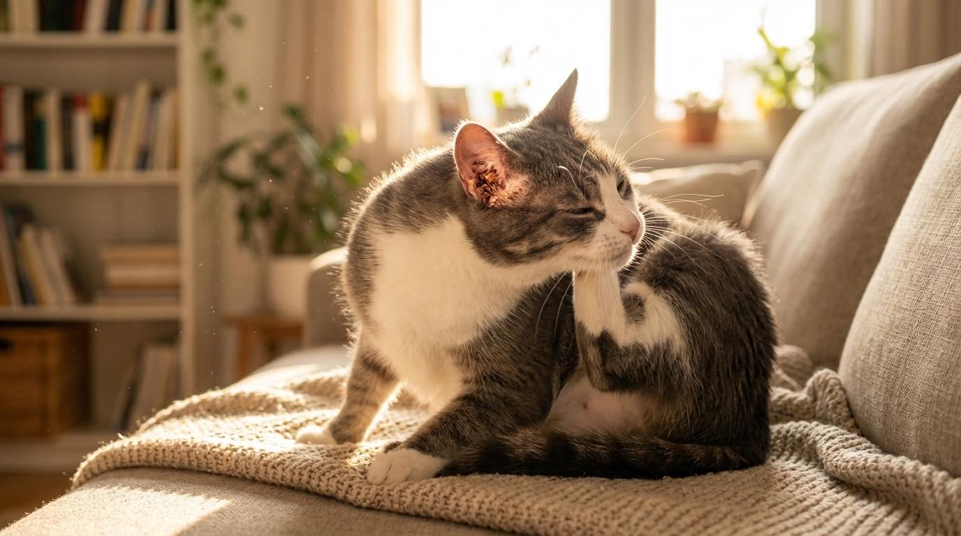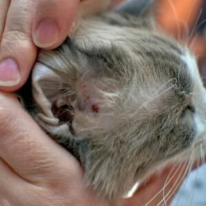 Kočičí svrab je nepříjemné kožní onemocnění způsobené parazitem Sarcoptes scabiei. Doprovodnými příznaky jsou silné svědění a výrazný diskomfort zvířete.